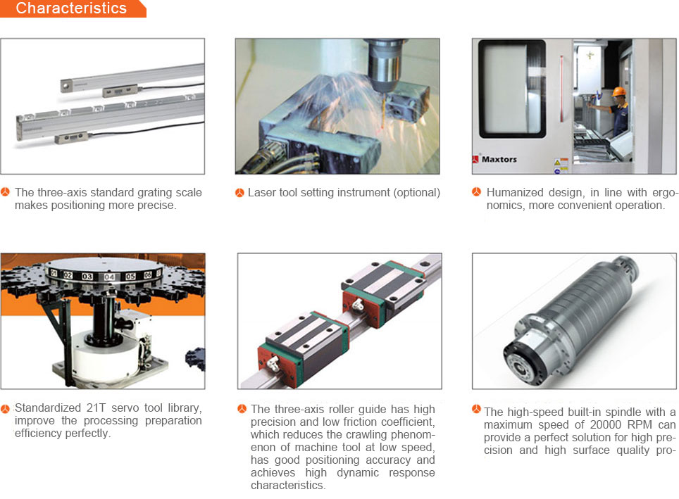 On the basis of inheriting the advantages of rigid rigidity, structural symmetry and strong stability of the traditional gantry machine frame, this machine introduces the international advanced dynamic rigid design concept and optimizes the design of moving parts. The machine tool has strong rigidity and fast response characteristics, which is suitable for various types of mold finishing. |